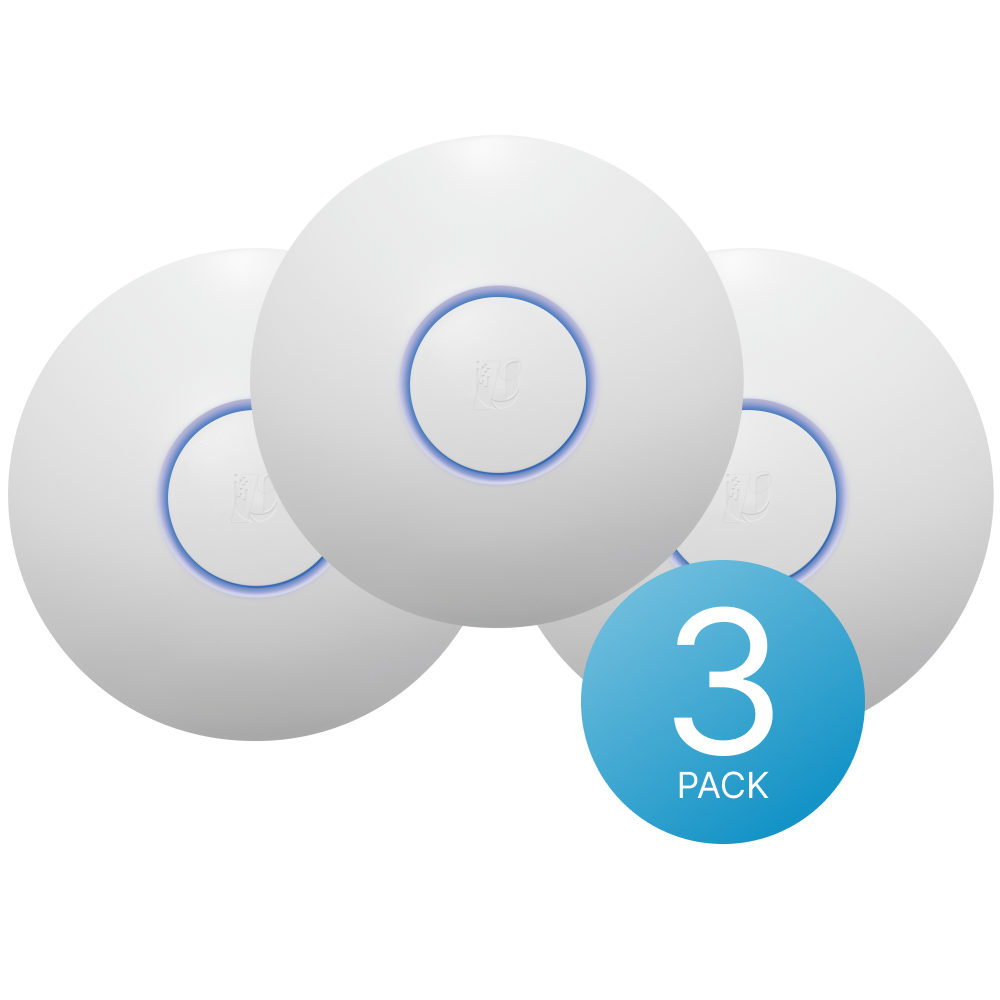 Комплект из трёх точек дотупа. UniFi AP-PRO двухдиапазонная точка доступа Wi-Fi 2.4 ГГц и 5 ГГц поддерживают технологию MIMO. UniFi AP-PRO работает одновременно в диапазонах 2.4 ГГц и 5 ГГц, благодаря чему суммарная пропускная способность достигает 750 Мбит/с.